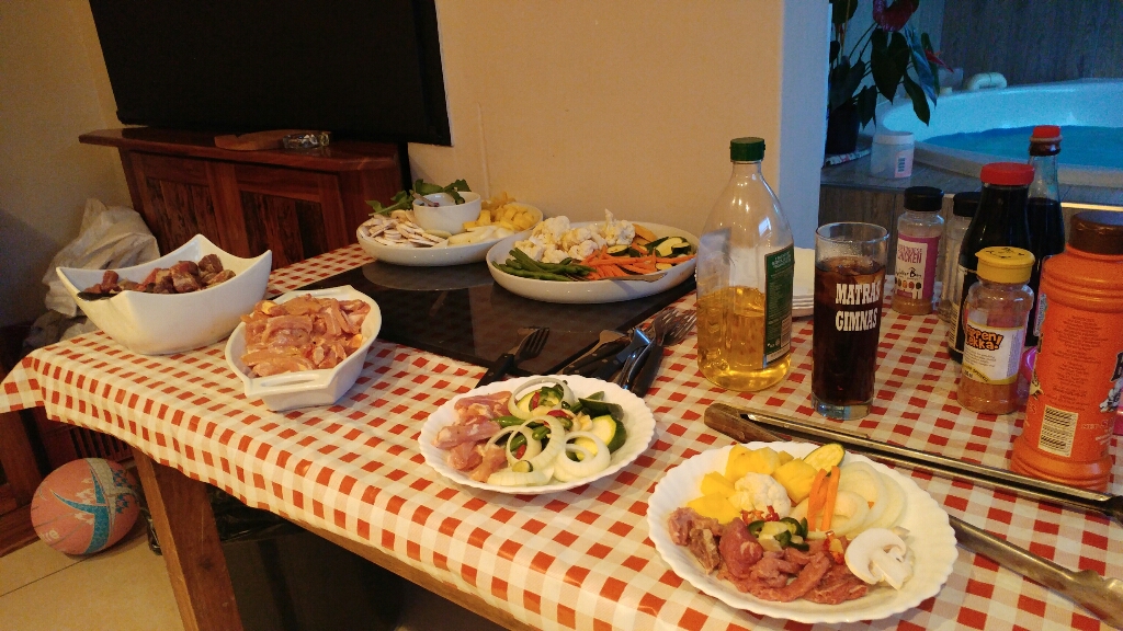 I chose the mushrooms, zucchini, peppers, onions and patty-pans with some sliced steak. As I wasn't going first I didn't add any sauces as the residual sauces on the grill helped. I added some vinegar though for taste. I wasn't sure about my portions so I uses a small plate.